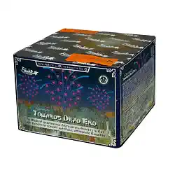 Im Wechsel geschossene Blütenstern Buketts in Rot mit Rotglitter-Schweif und blauen abbiegenden Kometen