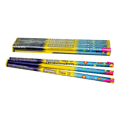 Klassische Römische Lichter mit je 10 im Wechsel geschossenen Leuchtkugeln in Violett, Gelb, Blau, Grün und Rot